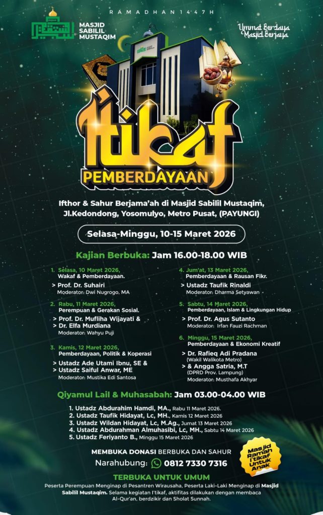 Di sinilah Sabilil Mustaqim masuk dengan narasi baru. I’tikaf di sini bukan cuma soal duduk diam menghitung tasbih, tapi soal bagaimana tasbih itu bertransformasi menjadi strategi pengentasan kemiskinan, pendidikan transformatif, dan pemberdayaan ekonomi. Ini adalah i’tikaf yang punya output jelas: mencetak Social Engineer.